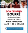 Mardi 5 mai 2026 Don du sang Montrichard Val de Cher Rendez-vous à la salle des fêtes de Bourré pour une collecte de sang. L’Etablissement Français du Sang compte sur vous ! Pour plus d'informations