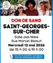 Mercredi 13 mai 2026 Don du sang Saint-Georges-sur-Cher Rendez-vous à la salle des fêtes de Saint-Georges-sur-Cher pour une collecte de sang. L’Etablissement Français du Sang compte sur vous ! Pour plus d'informations