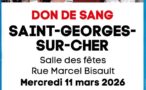 L’Etablissement Français du Sang vous invite à donner votre sang à la salle des fêtes de Saint-Georges-sur-Cher de 15 h 00 à 19 h 00 le mercredi 11 mars 2026.