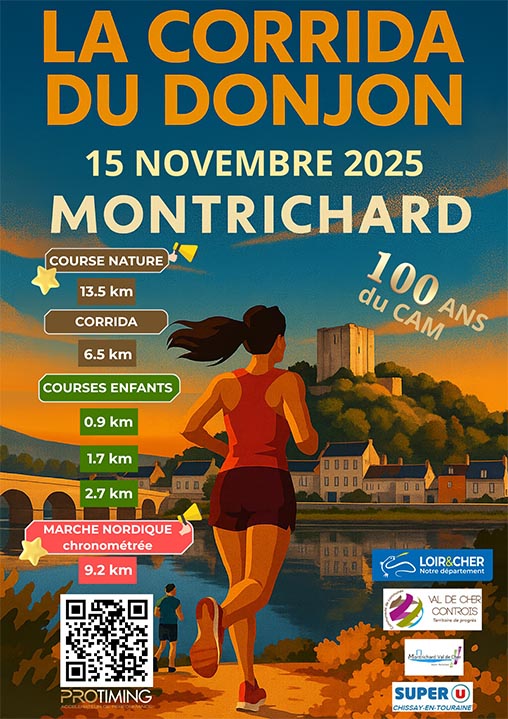 Le CAM Vallée du Cher Controis fête ses 100 ans. Pour l’occasion, participez à une édition exceptionnelle de La Corrida du Donjon ! Un événement sportif et festif à ne pas manquer, que vous soyez coureur aguerri, marcheur motivé ou simple supporter dans l’ambiance unique de Montrichard !