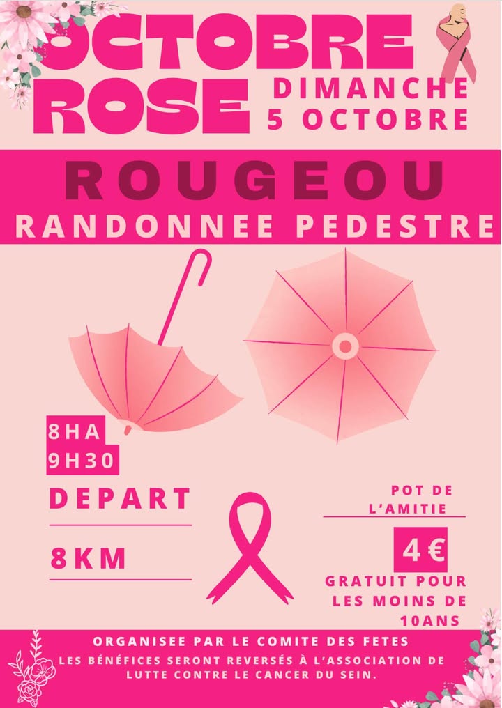 Le comité des fêtes de Rougeou organise une randonnée pédestre de 8 km au profit de l’association de lutte contre le cancer du sein à l’occasion d’octobre rose.
