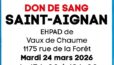 Don du sang Saint-Aignan 7 janvier 2026 Rendez-vous à l’EHPAD de Saint-Aignan pour une collecte de sang. L’Etablissement Français du Sang compte sur vous !