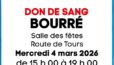 Don du sang Montrichard Val de Cher 7 janvier 2026 Rendez-vous à la salle des fêtes de Bourré pour une collecte de sang. L’Etablissement Français du Sang compte sur vous !