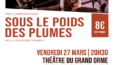 Théâtre du Grand Orme : Sous le poids des plumes 16 février 2026 Découvrez Sous le poids des plumes par la Compagnie Pyramid, un spectacle de danse poétique au Théâtre du Grand Orme le vendredi 27 mars.